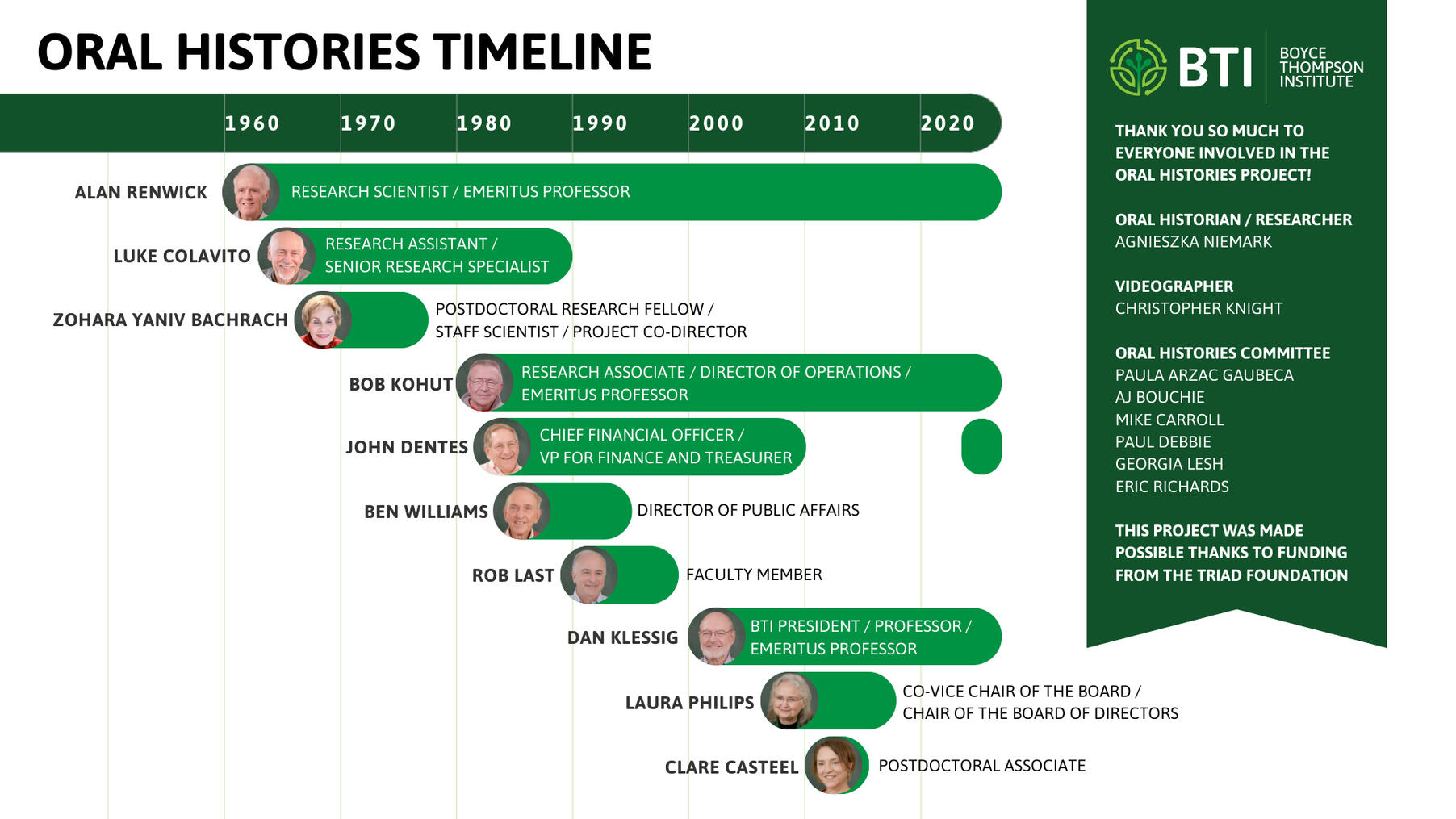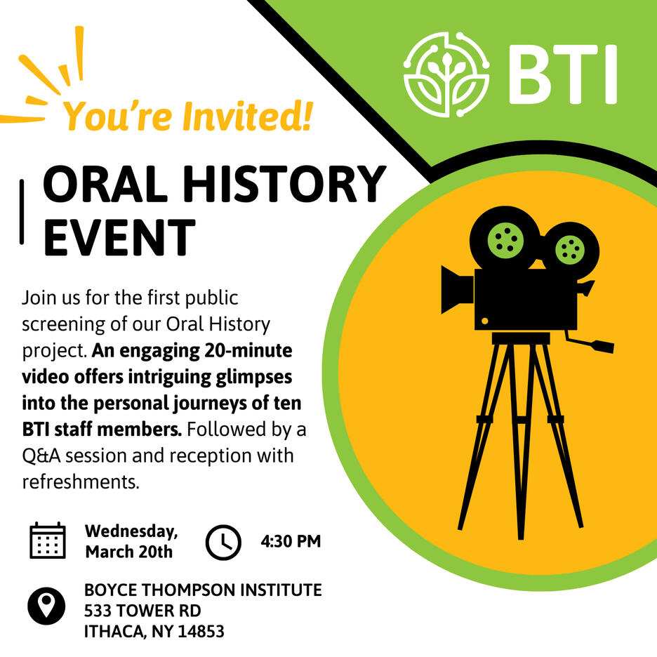 You are invited to the first public screening of our Oral History project. An engaging 20-minute video offers intriguing glimpses and entertaining highlights into the personal journeys of ten BTI staff members.Accompanied by a Q&A session and reception with refreshments, this event invites attendees to delve deeper into the rich tapestry of our history.