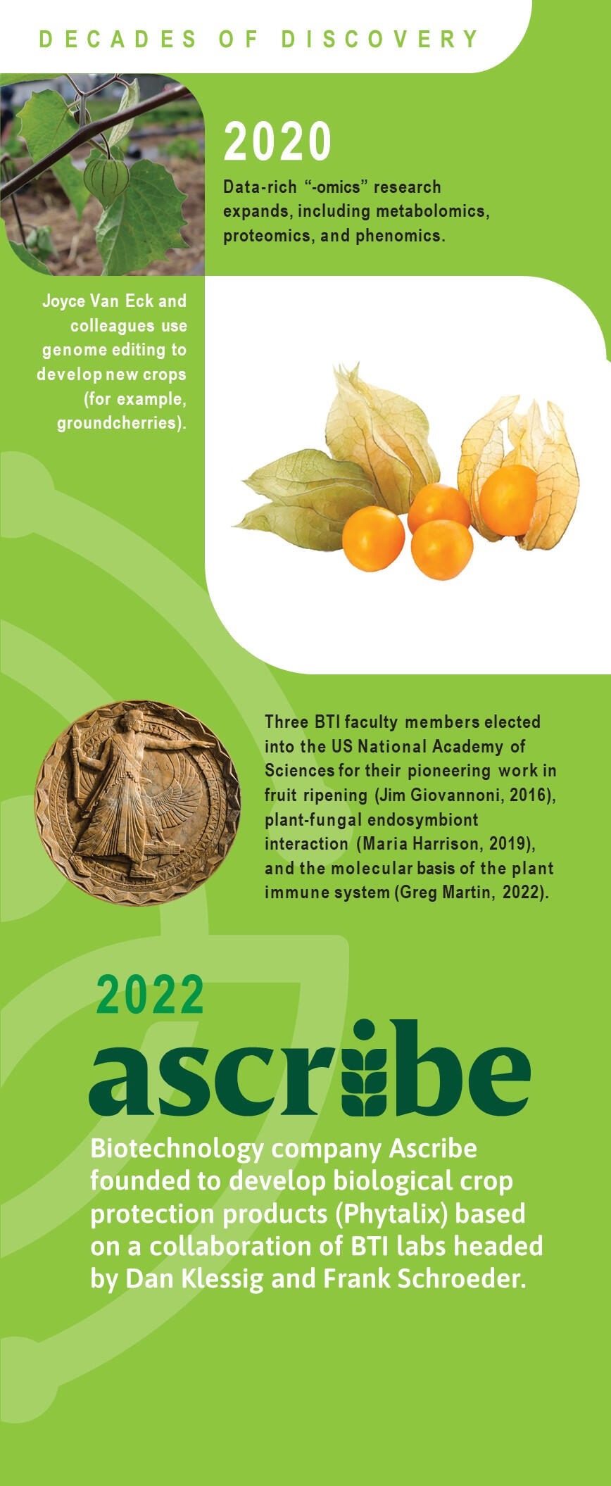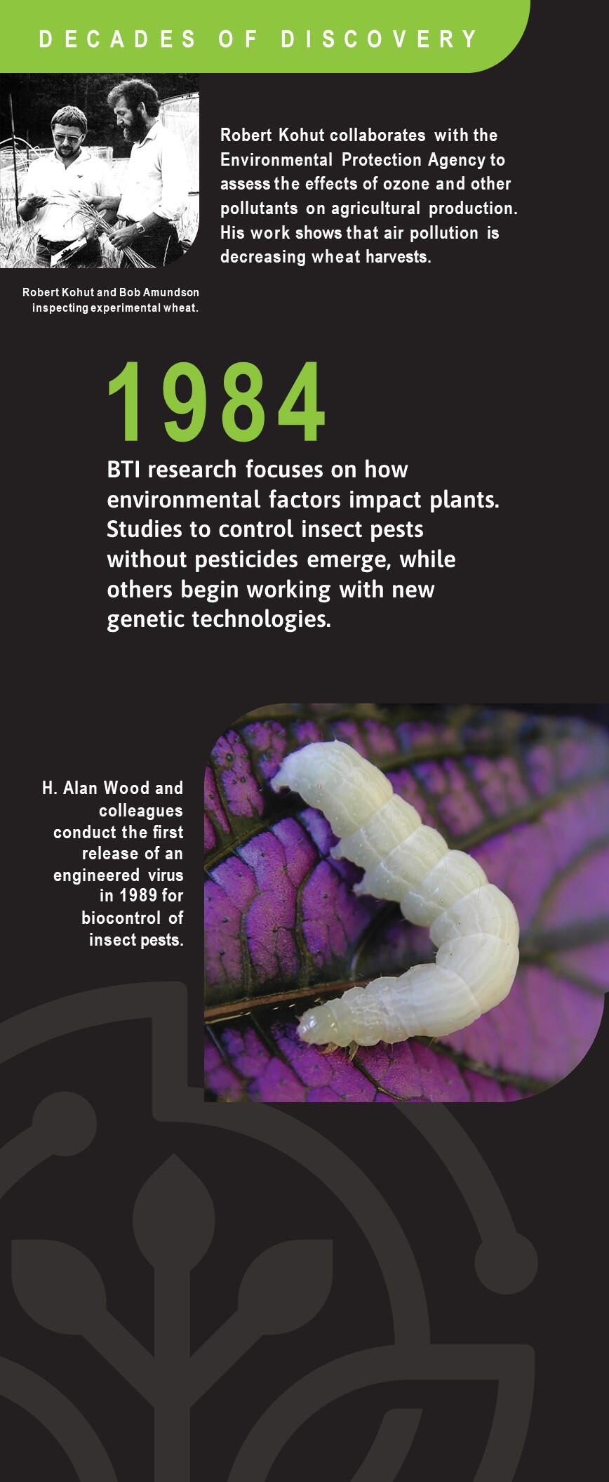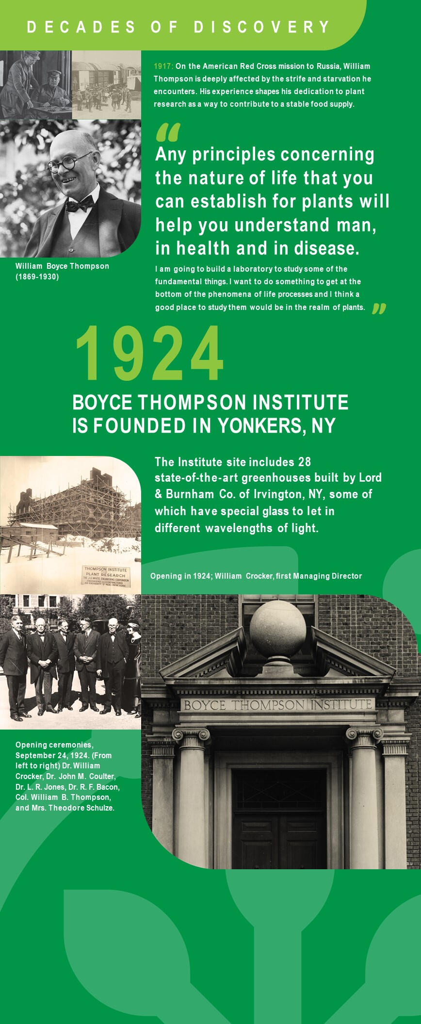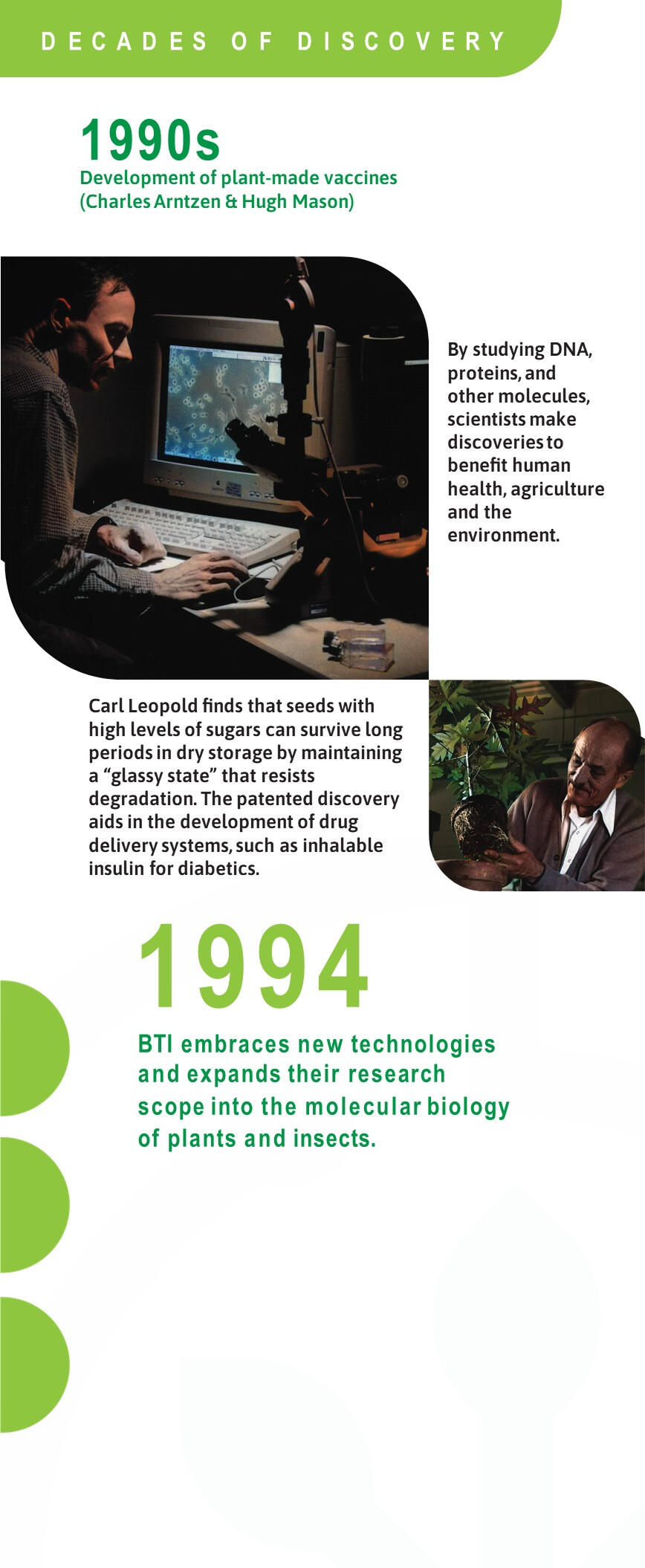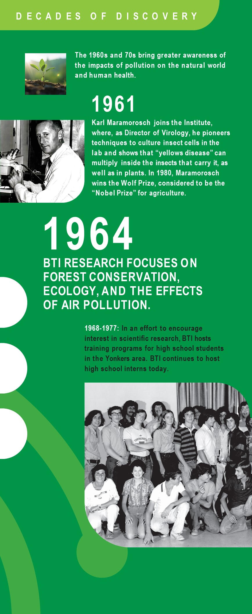 Join us for the unveiling of our Decades of Discovery display. 100 years of groundbreaking research and significant milestones are visually represented in an engaging format, narrating the story of BTI's relentless pursuit of knowledge.