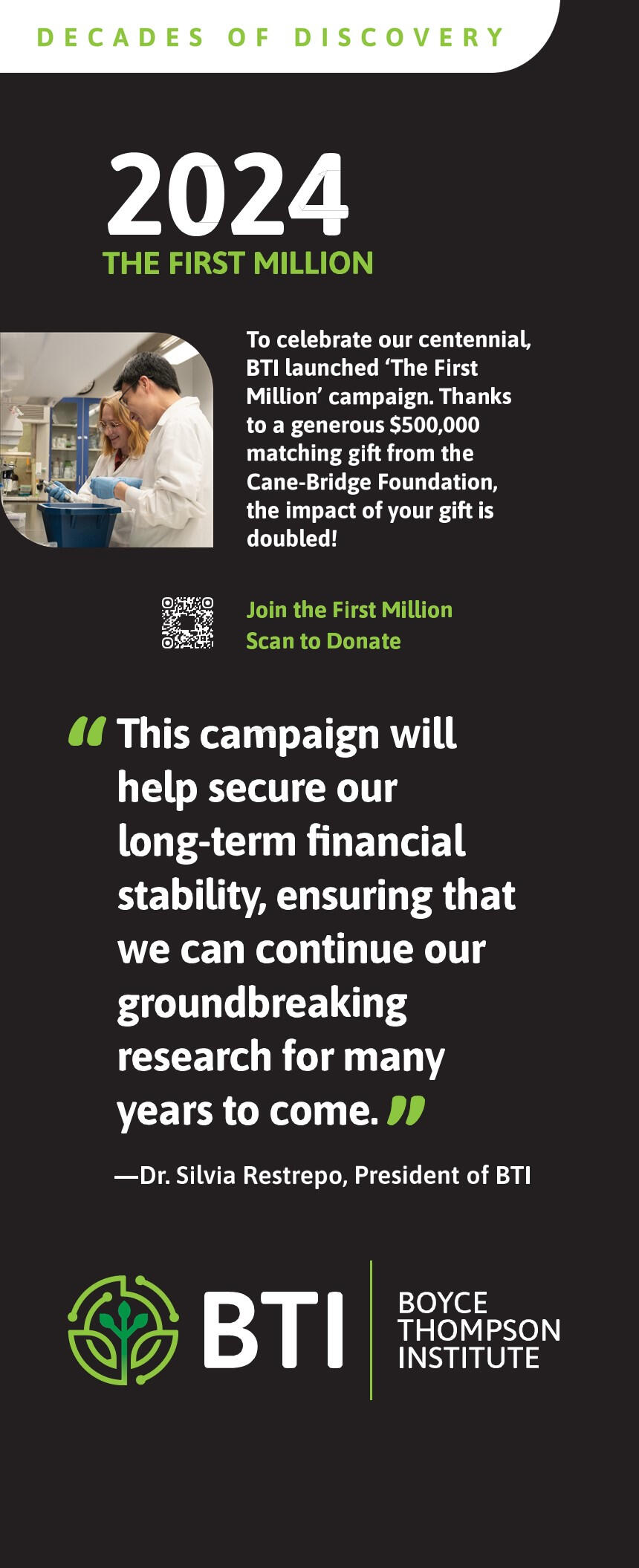 As BTI steps into its next century, it does so with a renewed spirit of innovation and an expanded vision. The Institute looks forward to continuing its tradition of pioneering research, with a focus on addressing contemporary challenges such as sustainable agriculture, climate change, and food security.In this pivotal year, BTI not only looks back with pride but also looks forward with anticipation, ready to embark on new paths of discovery and to continue making significant contributions to the world of plant science.